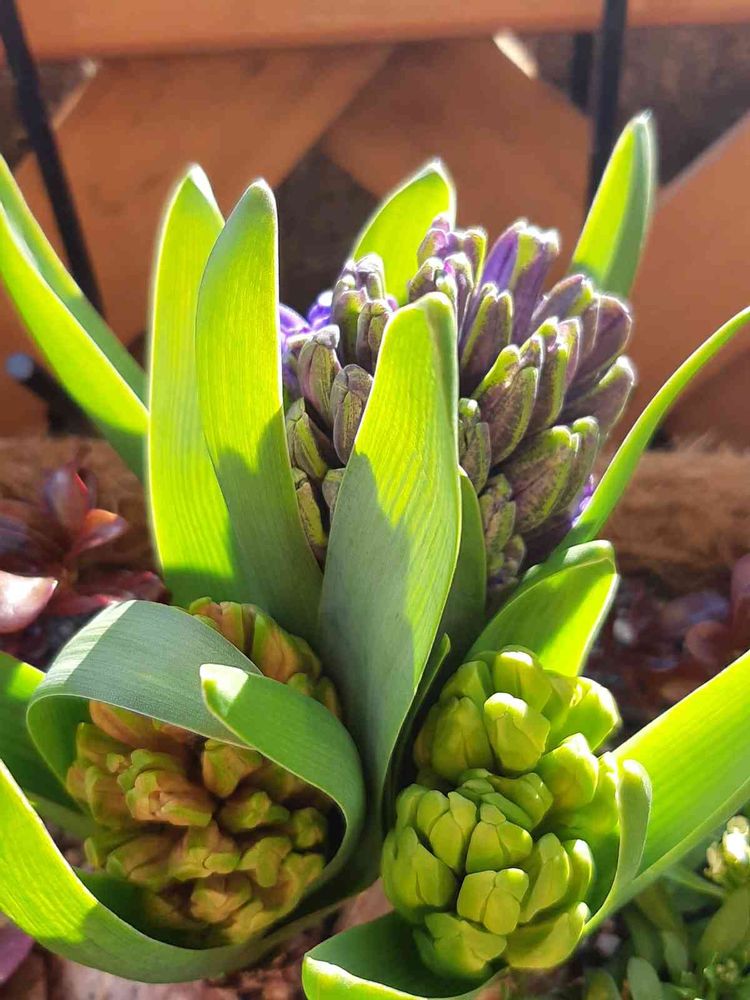 ヒヤシンス、水耕栽培で咲き終わったので、今軒下ですが寒いと咲くのはこれからですね☺️