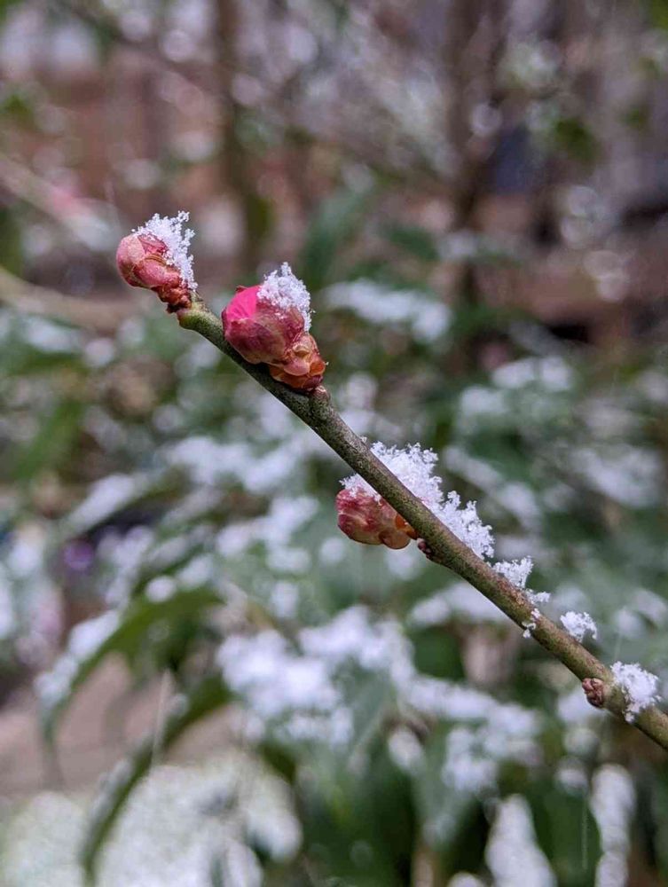 ふっくら蕾も膨らんで…今日はわた雪が❄❄❄