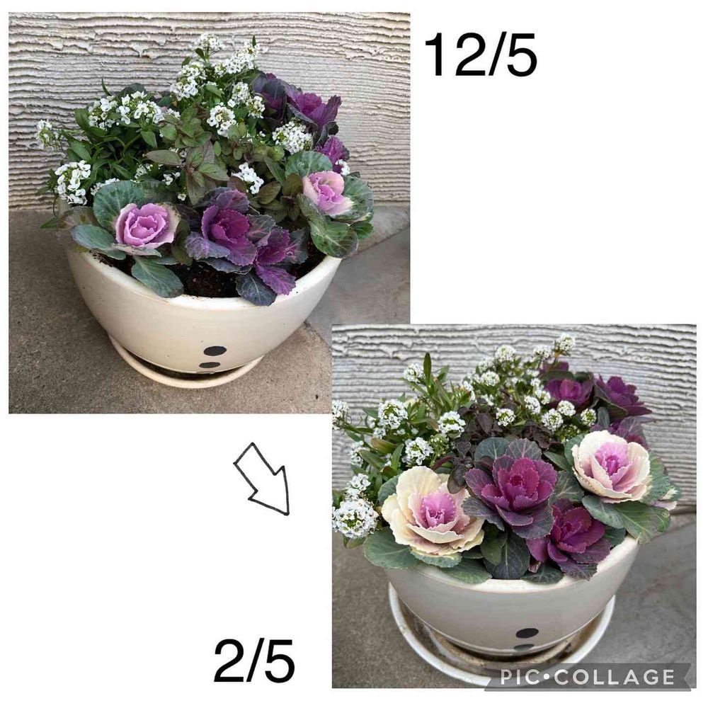 ハボタンの寄せ植え。2ヶ月後です。