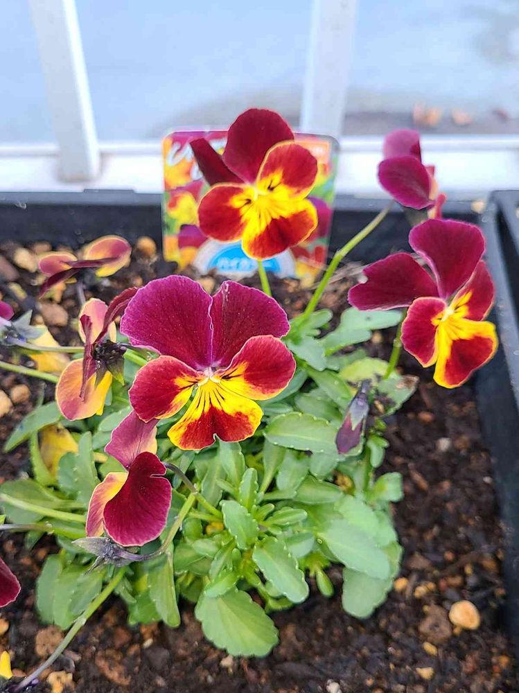 赤と黄色の可愛いビオラね。気持ちが明るくなるね。❤💛❤💛❤