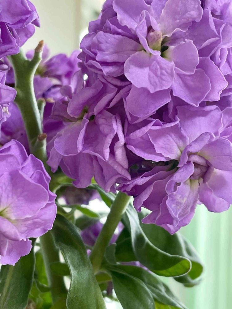 令和4年2月6日(日)晴れ☀️ 😶🌫️寒い おはよー^_^ございます 小さい庭の朝の見廻りマイナス気温😵ですー部屋に鉢を持込み📸投稿です😅。ストック ベイビーマリン元気に甘い香りを放っています。