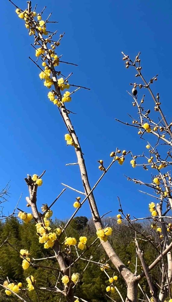 蝋梅 満月蝋梅,幸せの黄色いお花,青空とコラボシリーズの投稿画像