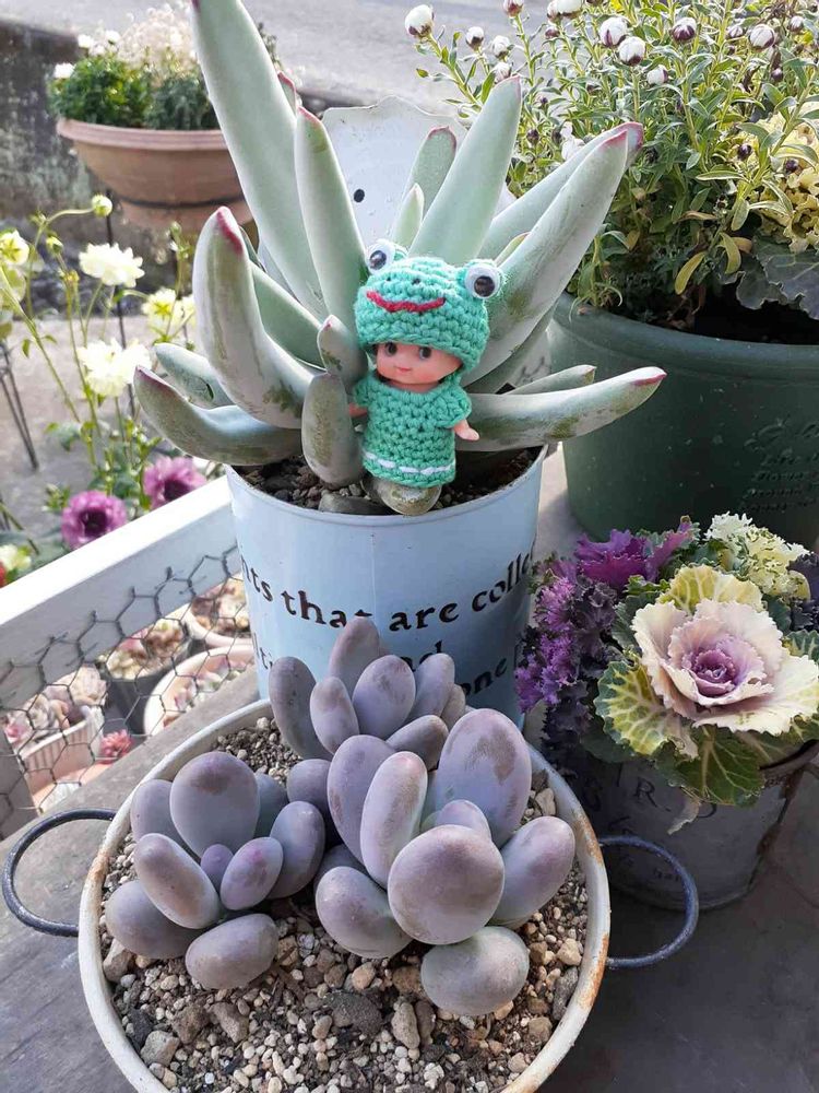 似たり寄ったりの寄せ植えだけど、みんなぷくぷくしてるから(*・ᴗ・*)وヨシ❣️