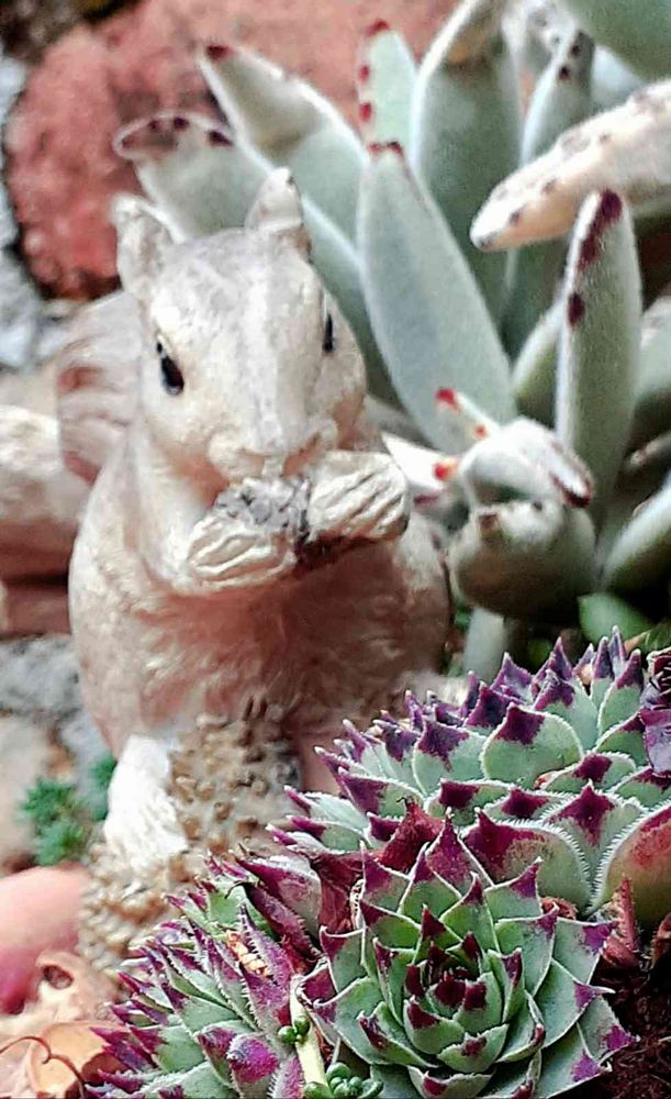 可愛いリスさん…美味しそうに何を食べているのかしら〜?この多肉さんも素敵ですね〜!!