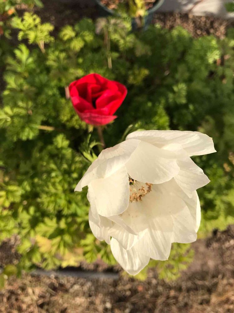 赤のアネモネちゃんも少しずつ咲いて紅白です😊