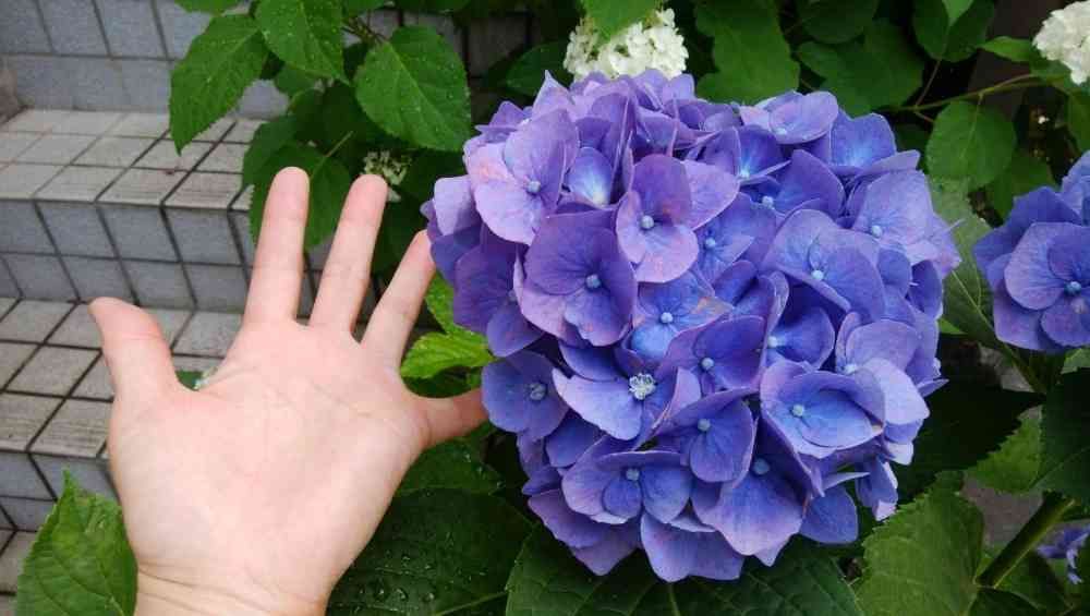 玄関入口で咲いた大きなあじさいのお花手を添えて友人よ有り難う✨青い花で青い花マニア4周年(2/7)までなので😉アルバムから探して投稿です😊