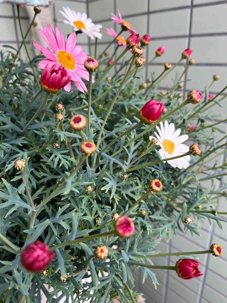 バルコニー/ベランダ,PWマーガレット ストロベリーホイップ,ガーデニングの投稿画像