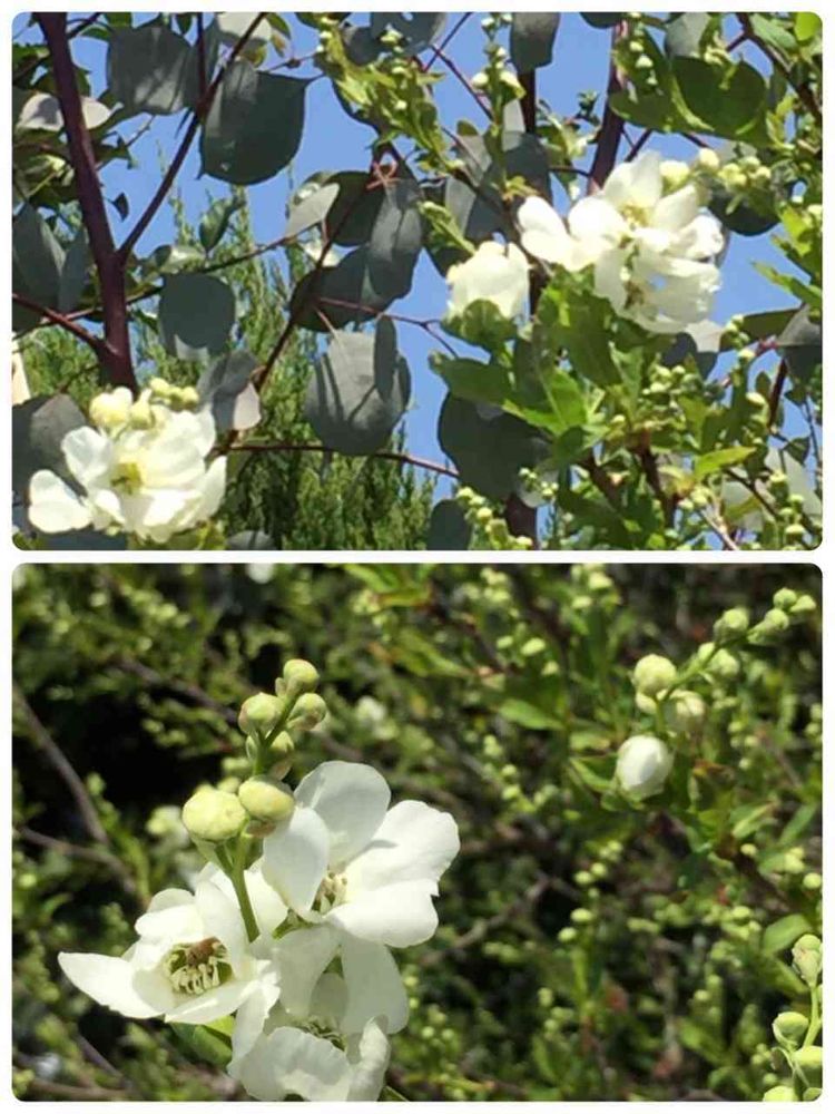 白いお花、利休梅、名前忘れてましたですよ😂白い蕾が可愛いですし、1部咲ですが😊❁*.゚❁.*・゚