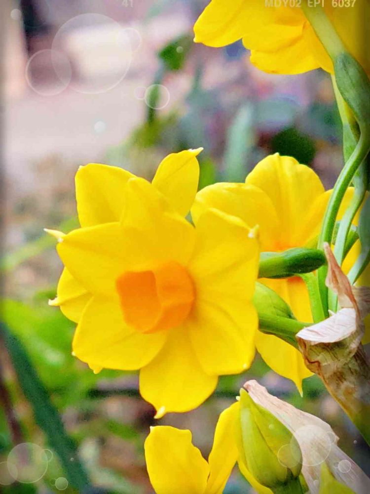 ほら見て𓂃 𓈒𓏸𑁍と鮮やかな黄色をまとった幸せと希望のお花キブサスイセンです・💛*’’*・.♬💛