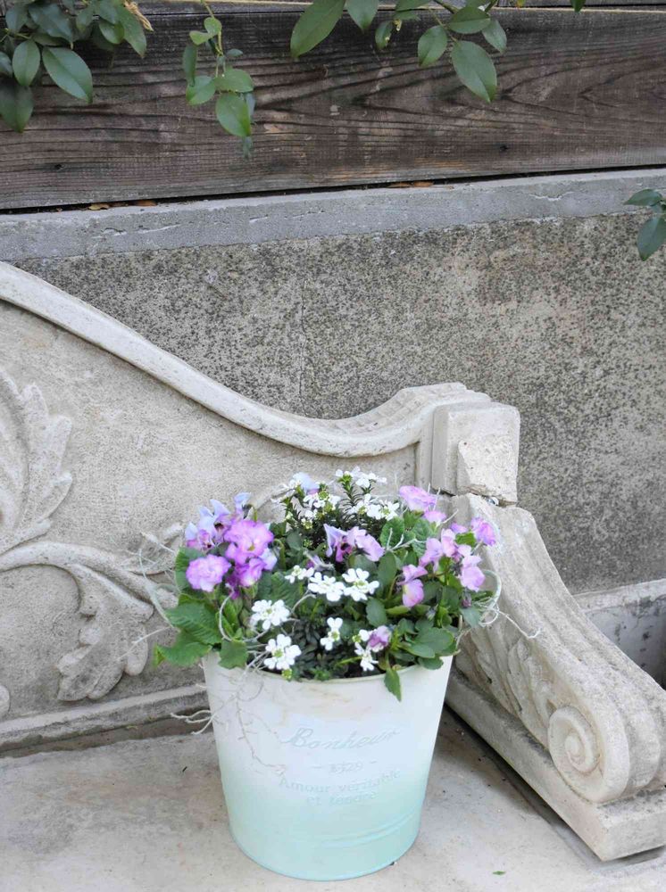 ビオラとプリムラ ジュリアン、イベリスの寄せ植え