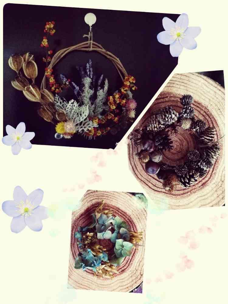 ¥100追加(材料使い放題)で小ぶりなリースも作れますと言うので( '-^ )bモチロン!!2個作りました~~♪