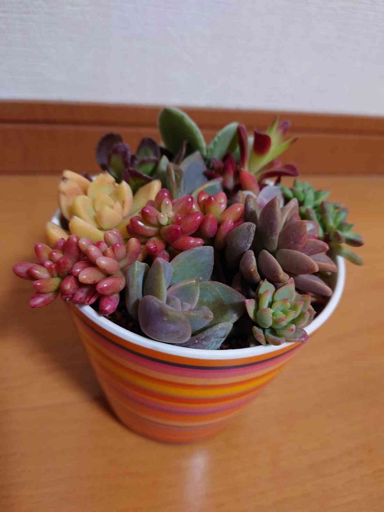庭で紅葉してた多肉さんも、やっと多肉丼にできた🤗 嬉しいです😄🙌