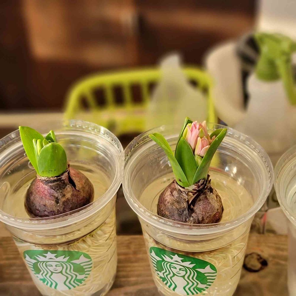 飲み物のカップでの栽培、良いですね(๑•᎑<๑)