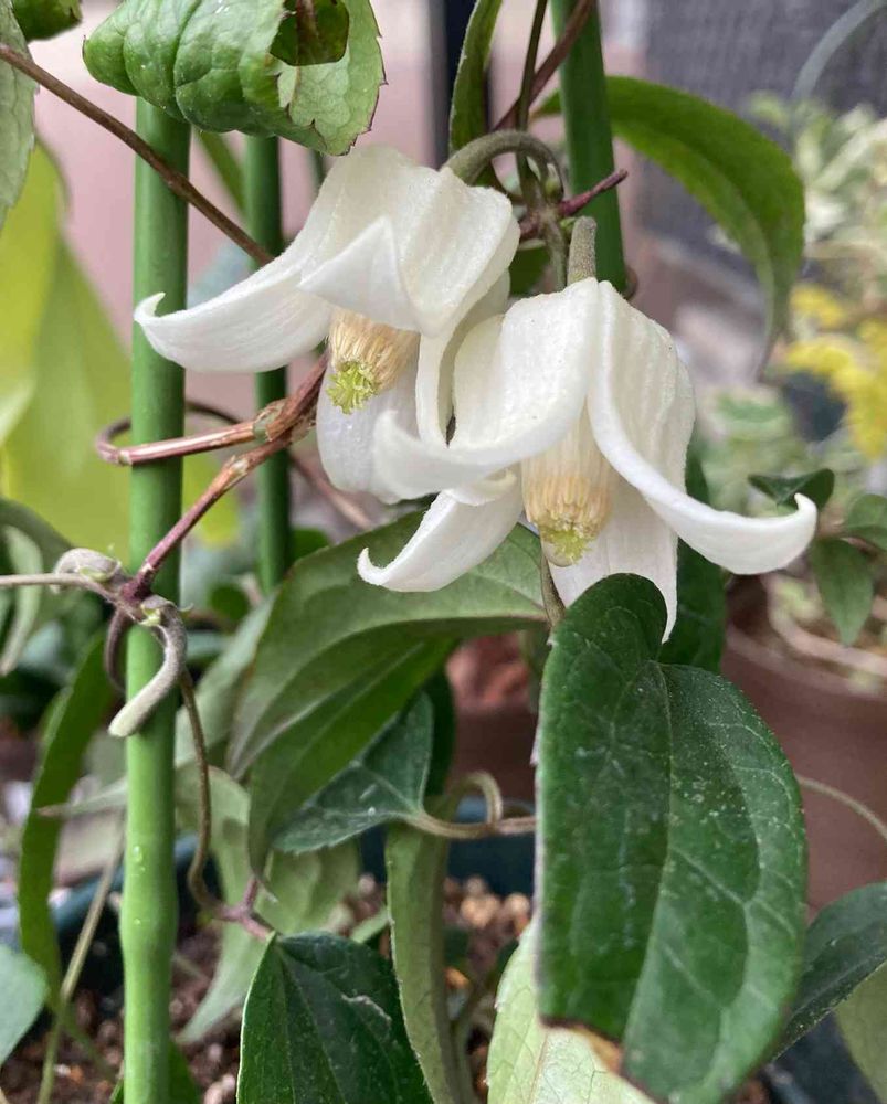 昨年12月1日に届き、新年から咲き始めました冬咲きクレマチスの今日の様子です。