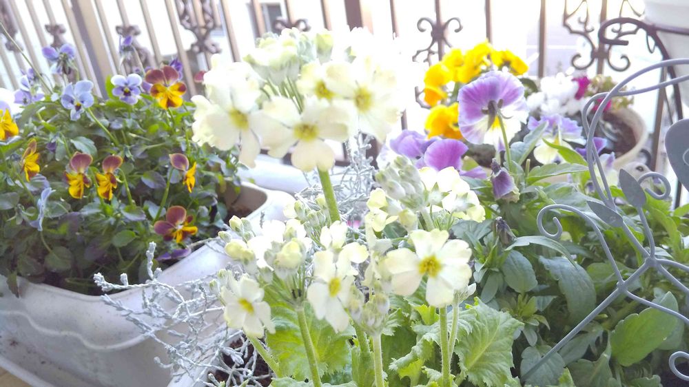 去年、白っぽい色のお花ばかり咲かせていたら、娘からなんか寂しい〜色んな色があった方が綺麗〜と😅言われたので、今回は色んな色を集めました😄元気が出ますねやっぱり〜😊春色〜