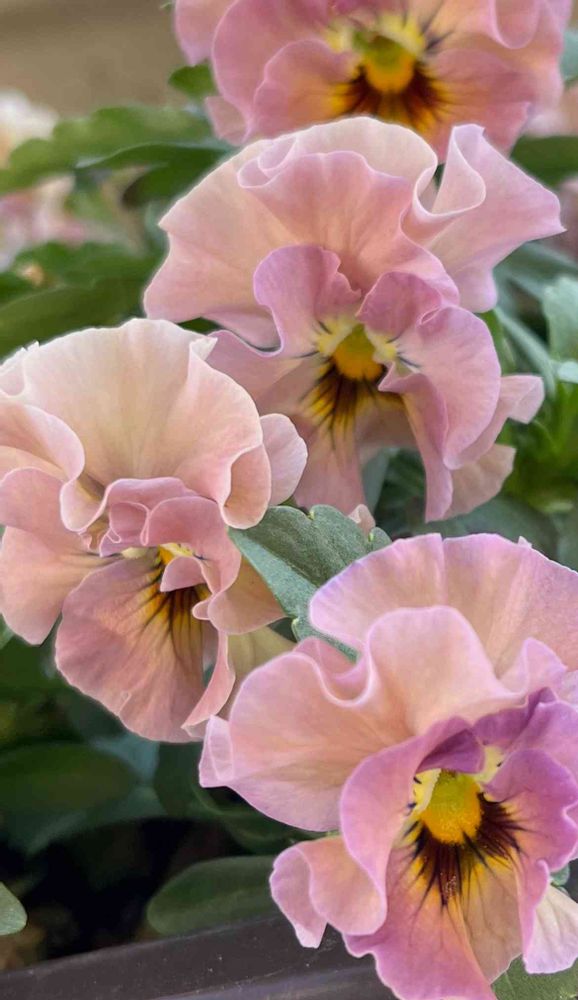 柔らかな風合いのフリル咲きビオラさんです。