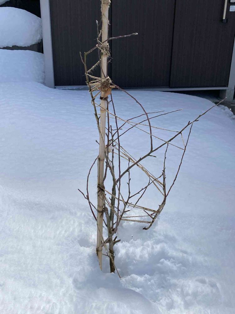 これも去年の大雪で枝が2本折れちゃったから今年は紐でくくったんだけど、自己流すぎて正解はわかりません💦💦💦