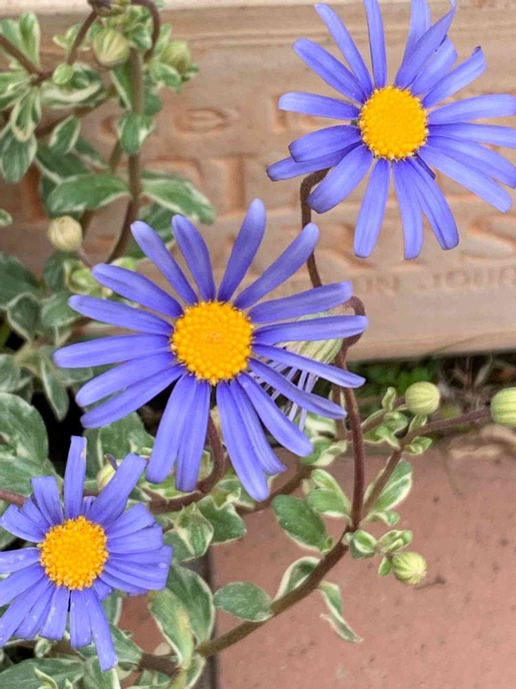 ブルーデイジーさん💙班入りの葉もすてきです💙💙💙デイジーさん、みたらし団子風💙💙💙ニコニコ三姉妹😊