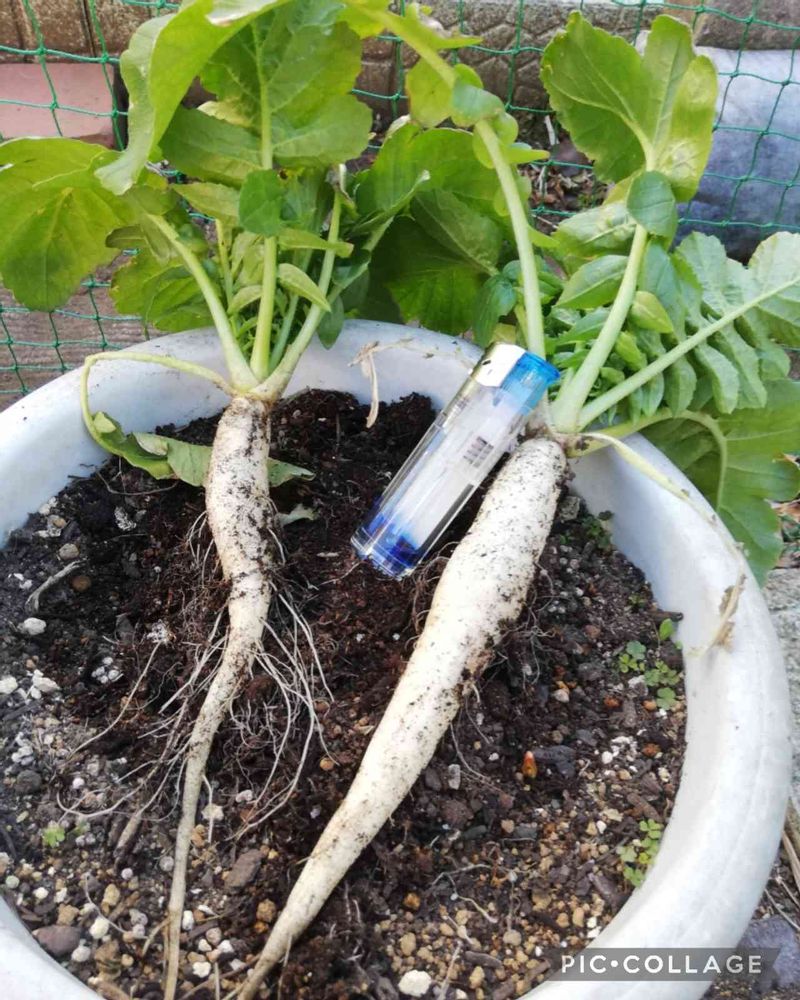 去年の9月に種を蒔いた大根 小さいのは予想していたけど やっぱりだった💦