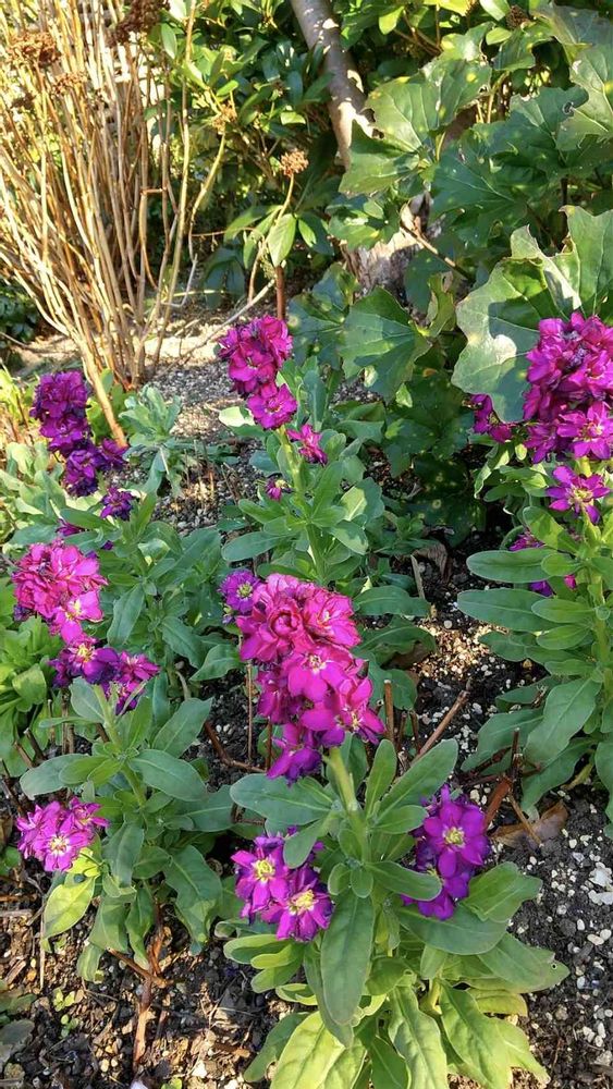 これは、3週間くらい前の散歩中に見たストックですが、うちの鉢植えのストックもだいぶ前から咲いてます。寒いせいか、ずーっと咲いてくれて嬉しいです💕😊