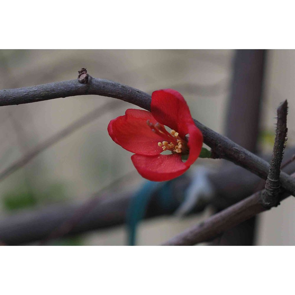 開花は当分先だと思っていたボケですが、ちょっと陰になる所でひっそりと咲いていました!!
