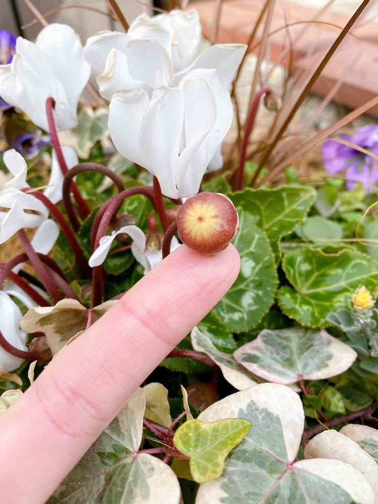 シクラメンの蕾ってこんなにまん丸なのねー🤗