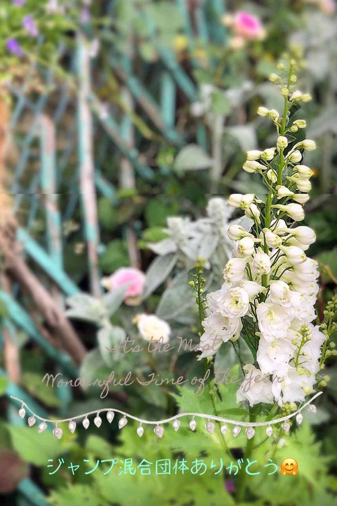 白いデルフィニウムが、ジャンプ台の高い塔に見えるよー🤣🤣