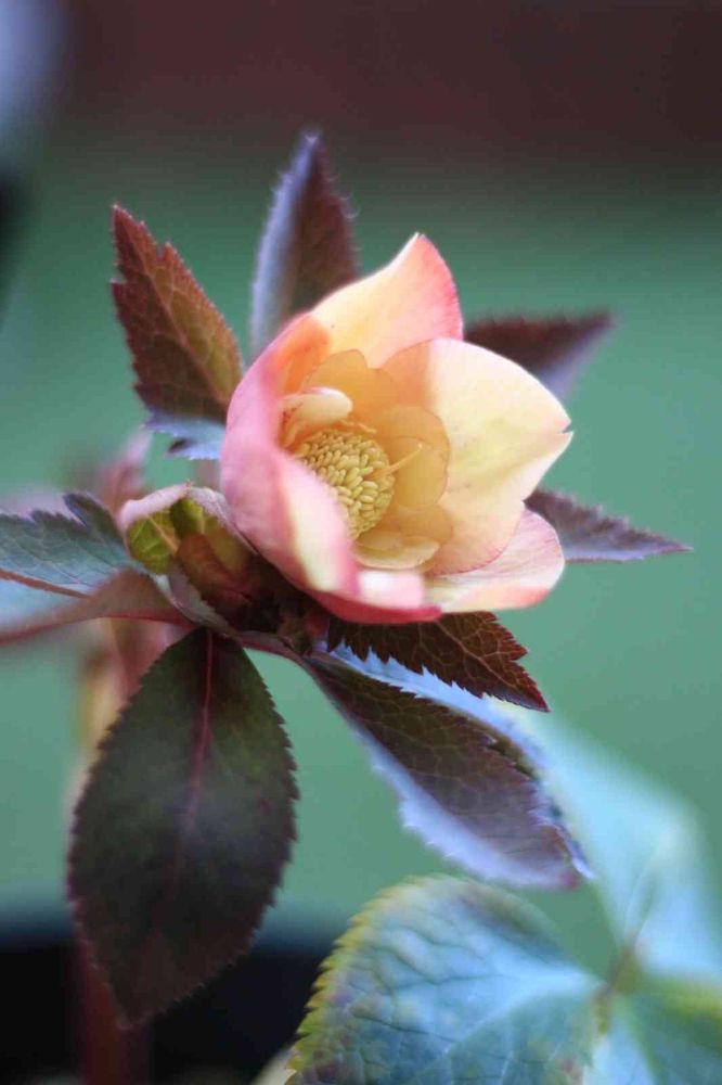 アプリコットの花色と、赤みがかった葉と茎が優しい雰囲気です。