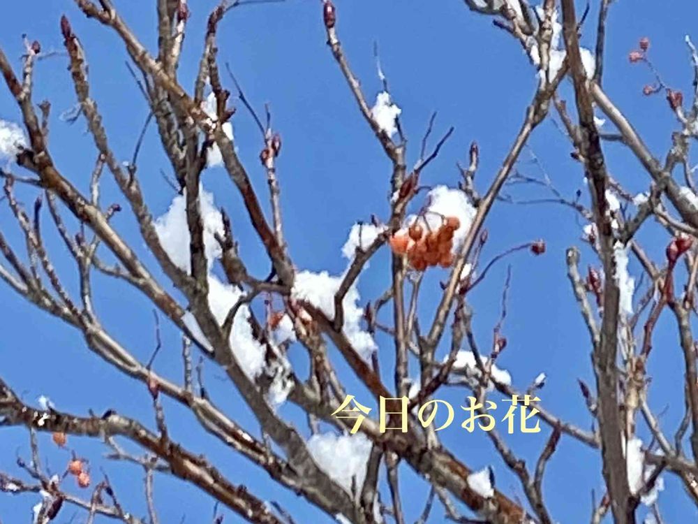 今は真っ赤な実が雪をかぶっていてたまに野鳥さん達がお食事しに来てくれます