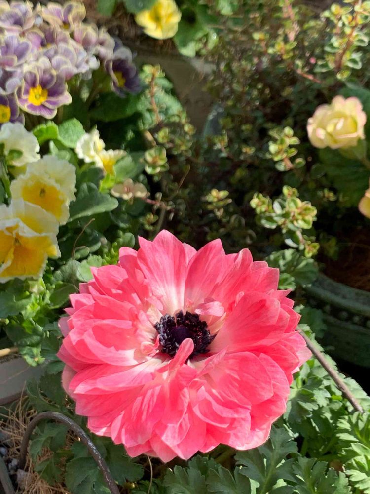 くもり空の中、水やりをしていたら、陽が差して来てアネモネが開いて来ました🌸🌸