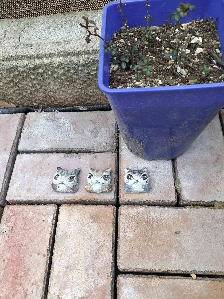 灰色のモルタルを練って型枠にいれ着色。余りのモルタルでダヤンをつくってみました。