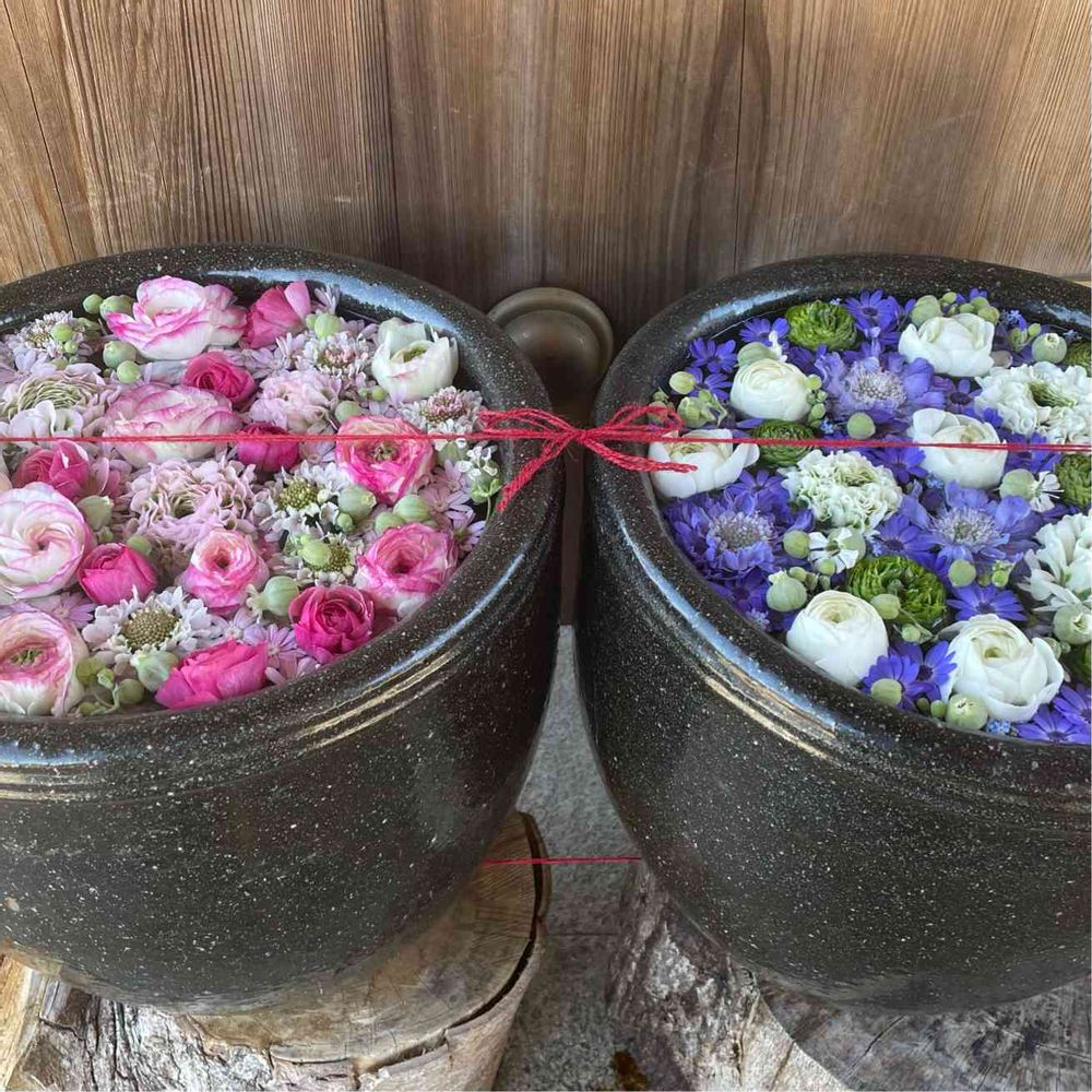 毎週入替わるカップル花手水