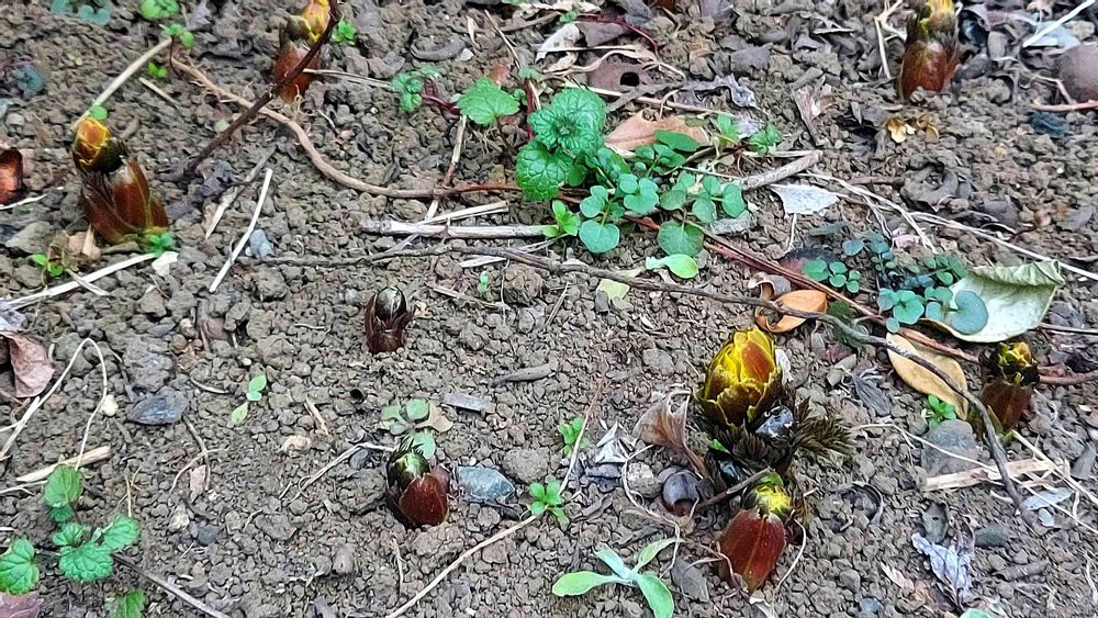 職場の側です。待ちに待った福寿草が芽を出しました‼️