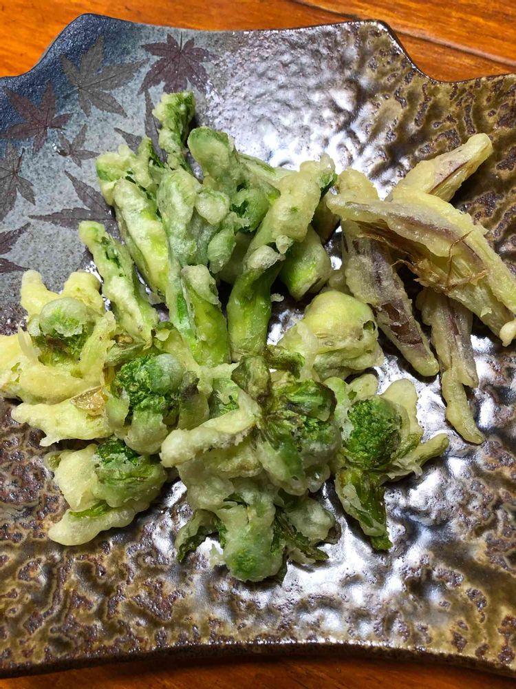 タラっぺ,蕗のとう、みょうがの天ぷらにしました
