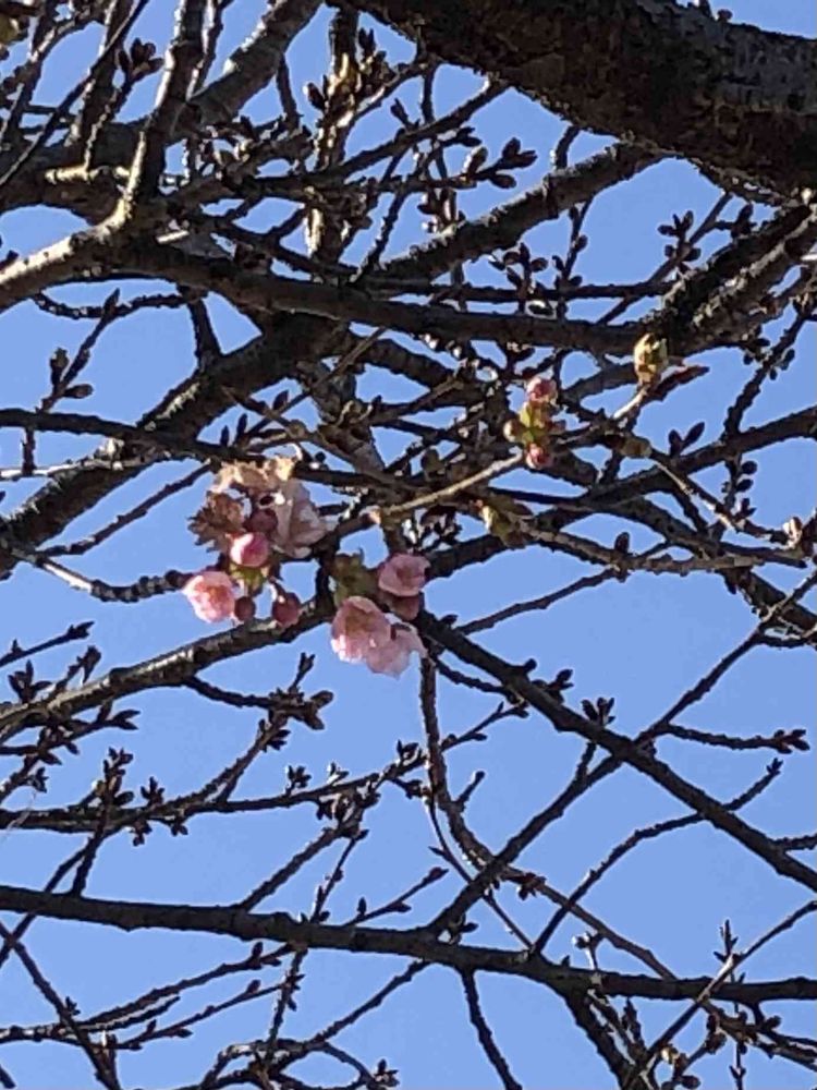昨日 伊勢崎市民の森公園の草笛の丘に植えられた河津桜が数輪咲き始めて来ました。🌸😊👍💓🎶