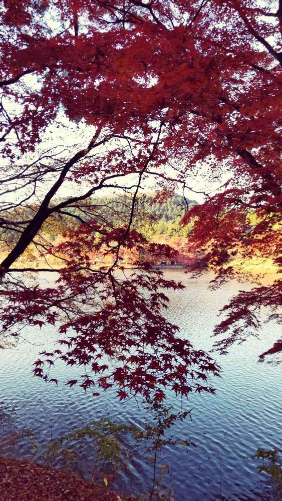まぁちゃんさんのお出かけ先,もみじ紅葉,湖畔にての投稿画像