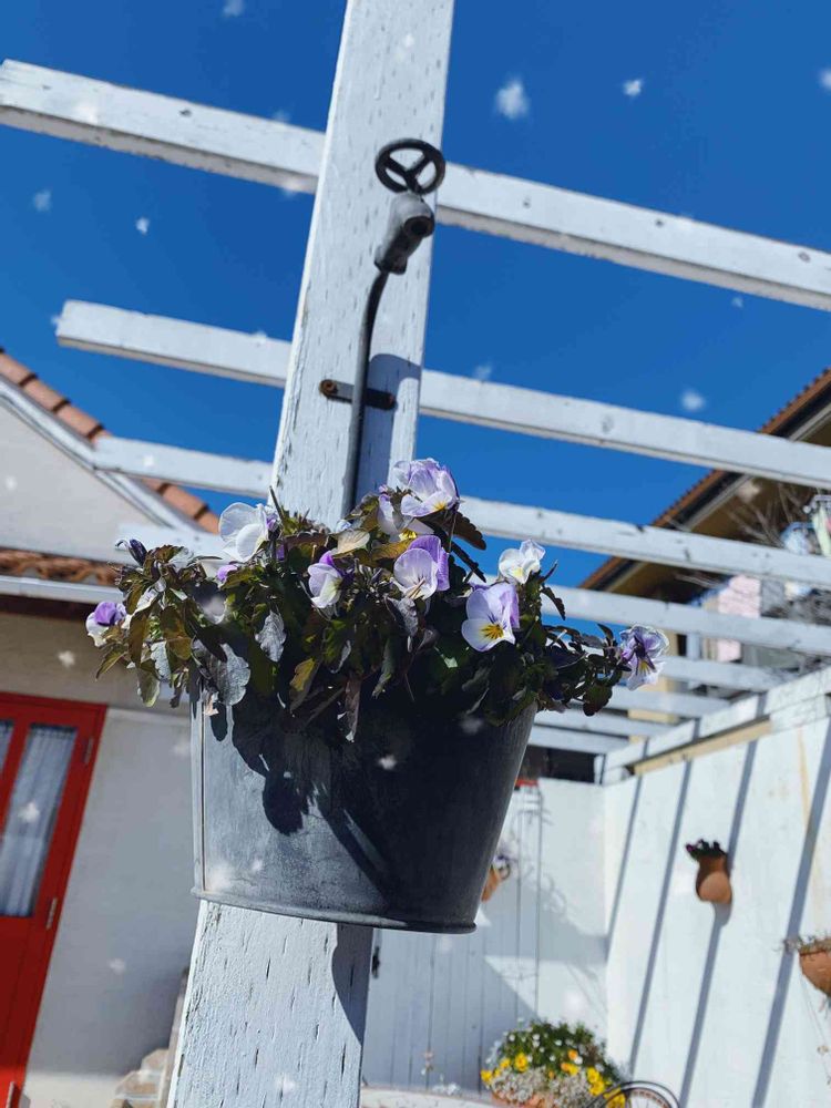 🌸🌼オシャレな蛇口付きのプランターの中のビオラ🌼