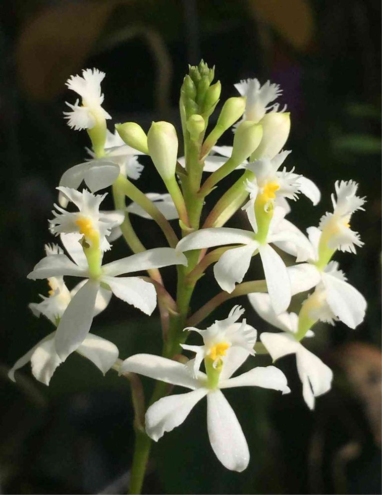 エピデンドラムの仲間には、リップを上にして逆向きに咲くものが、いくつかあります。