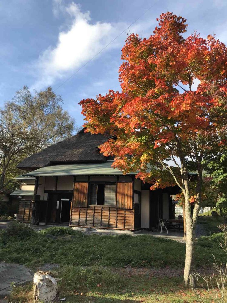 小津安二郎が昭和30年頃から別荘として使っていた蓼科にある無藝荘と今日のお花紅葉🍁です😸