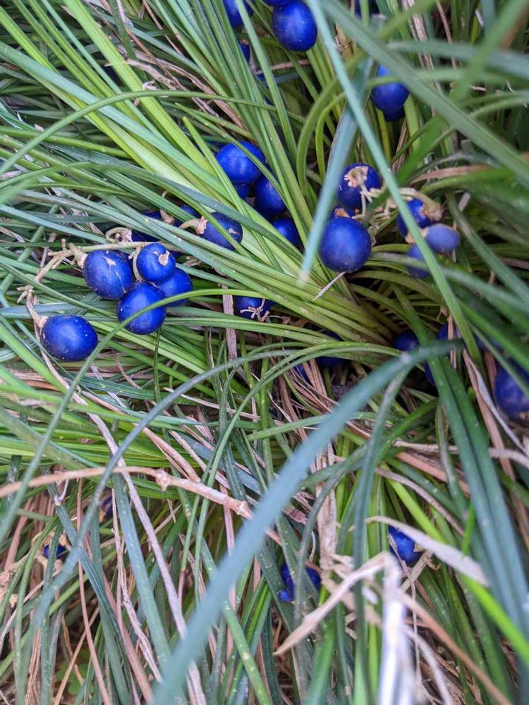 畑の虎の尾。手で探ってみたら、青い粒がぎっしりでした。