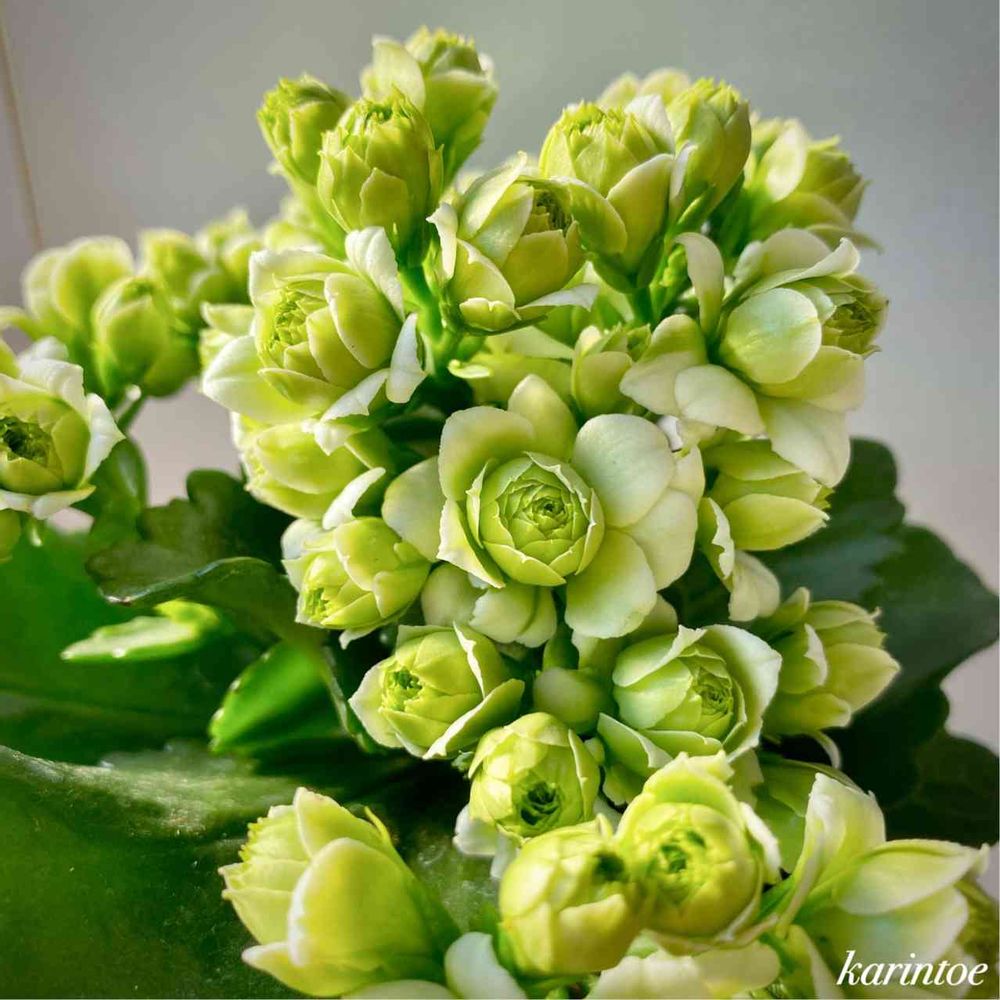 カランコエの八重咲き、ミニミニの薔薇みたいで可愛いですよね。私も数年前育てた事がありますが、この緑色の花もステキ(∩´∀`∩)💕また、育てたいって気持ちになりました(⑅•ᴗ•⑅)◜..°♡