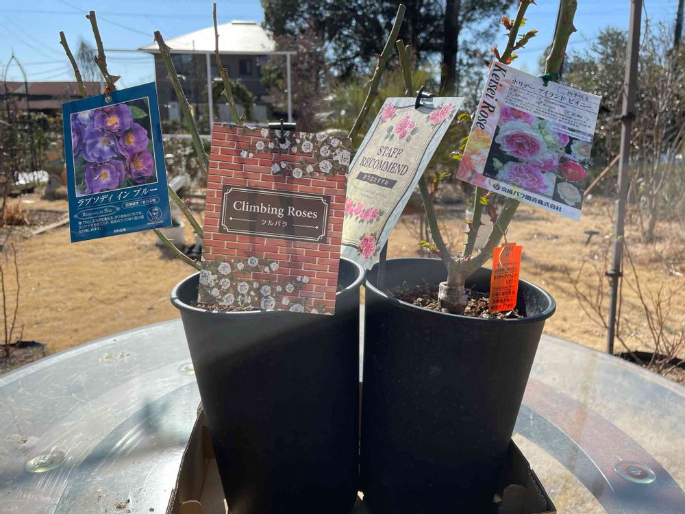 ジョイフルにアーティーチョークの苗あるかなと見に行ったはずが薔薇苗を2つ購入してしまいました😆🌹🌹
