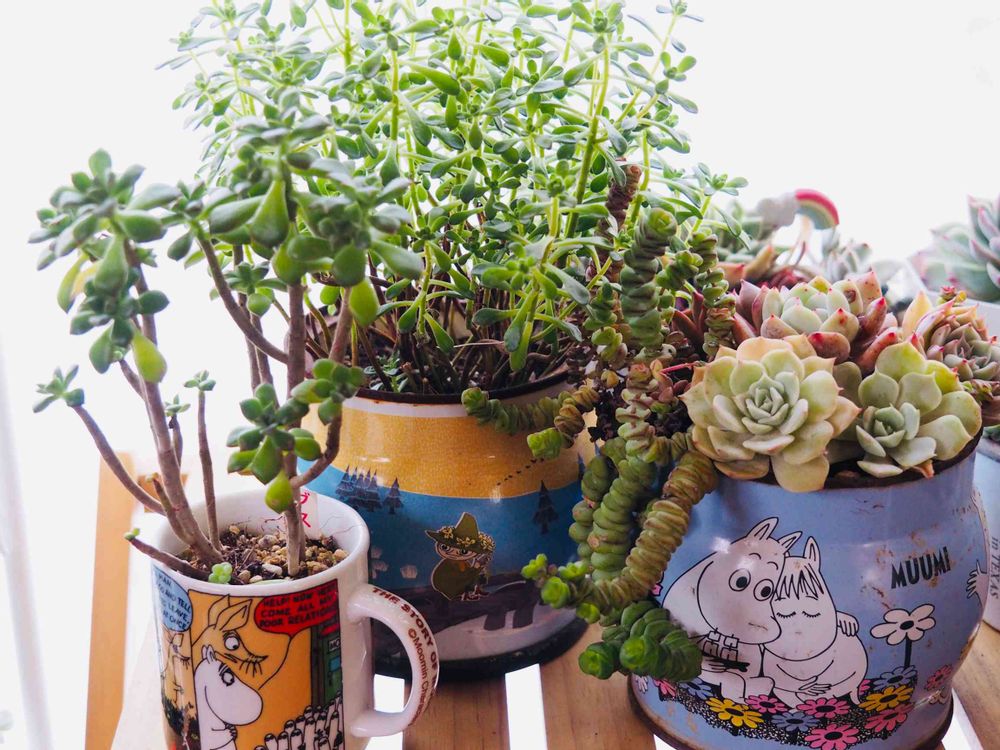 可愛い鉢は、お菓子の缶とマグカップですね?☺️