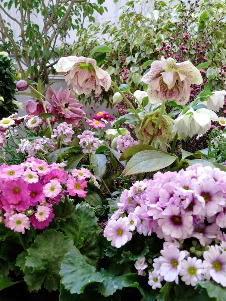 クリスマスローズを主役にした素敵な寄植えがたくさん展示してありました