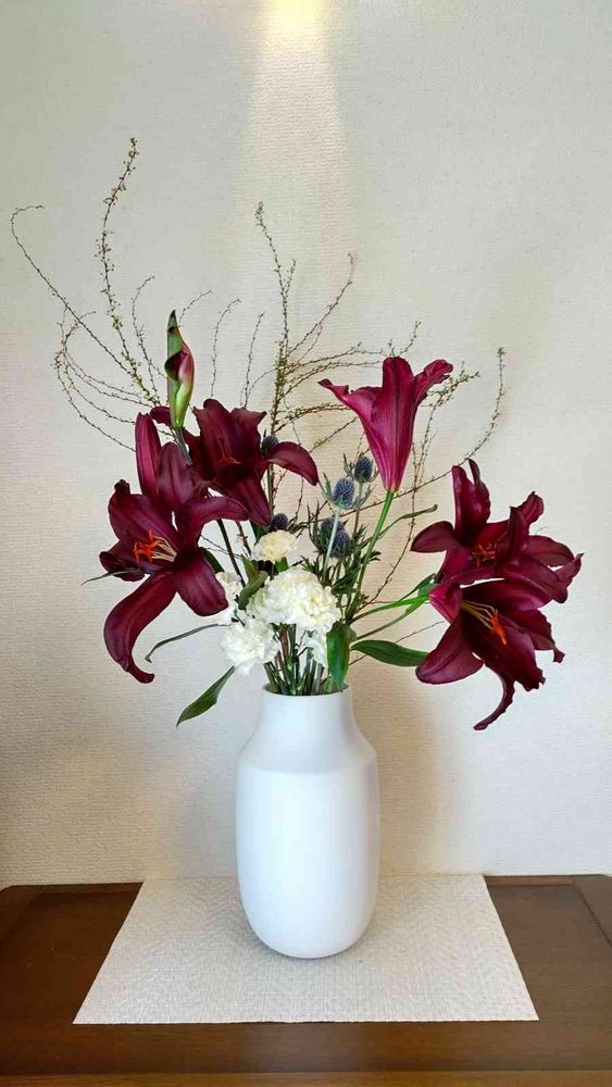 様 確かに枝ものがあるのとないのではかなり違った印象になりますよね。このお花と器によくマッチした枝ものでしたね。枝がお花を格上げしてくれました。褒めていただきありがとうございました🙏🙇