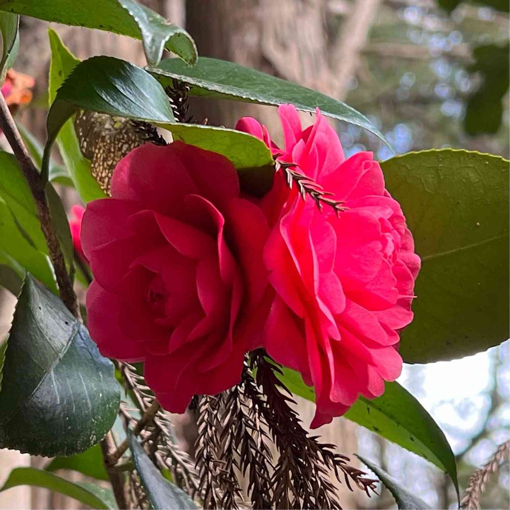 真っ赤な色が冴え冴えと美しい八重の椿♥️