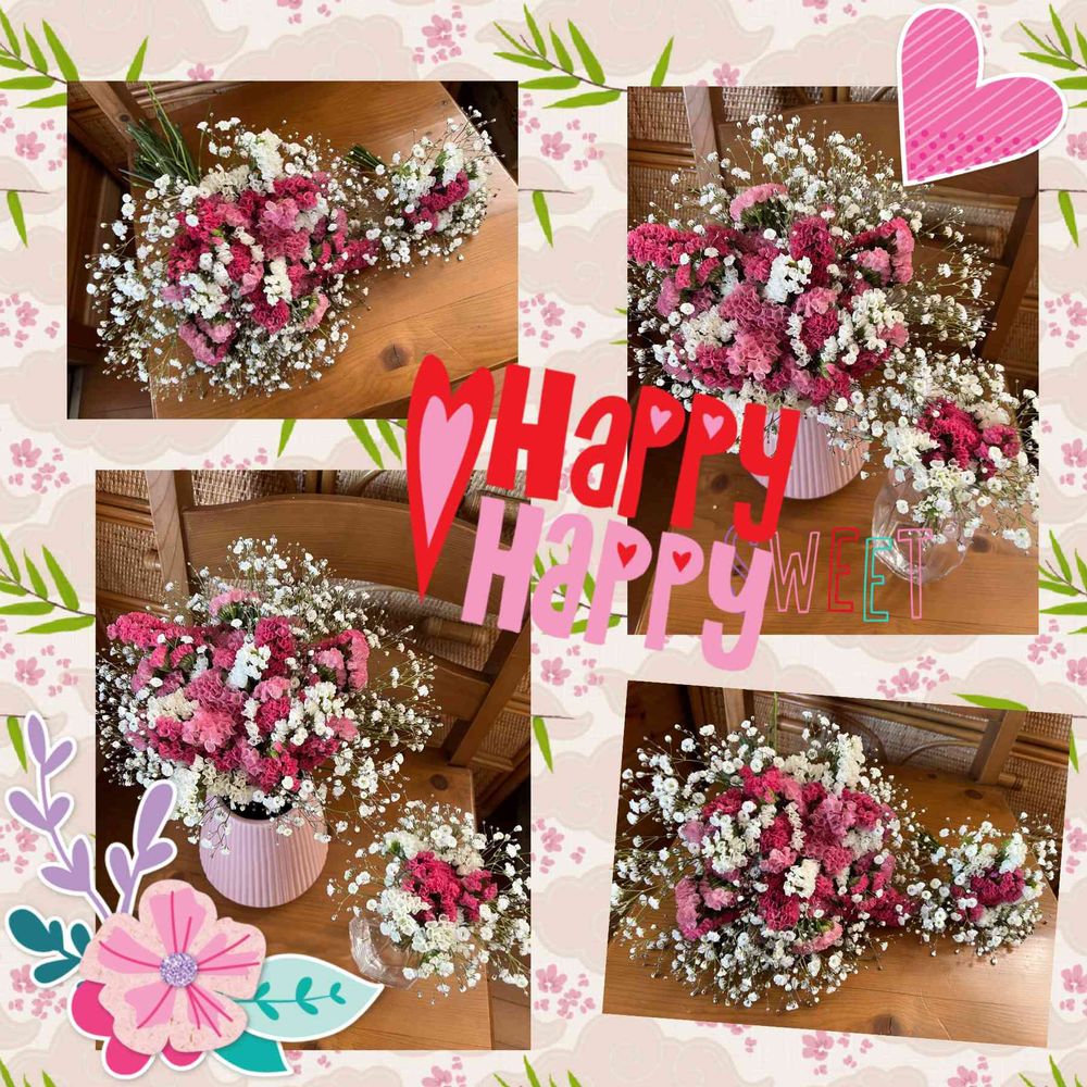 スターチスとかすみ草でバレンタインチックなブーケをつくってみましたぁ~♥️