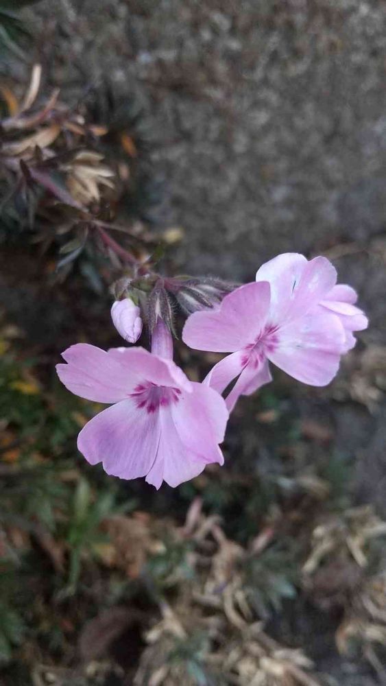 枯れたような葉っぱ🌿の中、少しだけ咲いていたシバザクラです。
