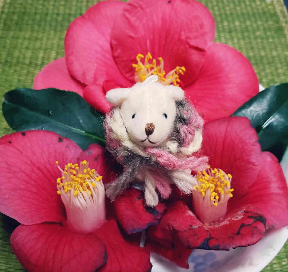 クマさんもキレイな椿に囲まれ🌸