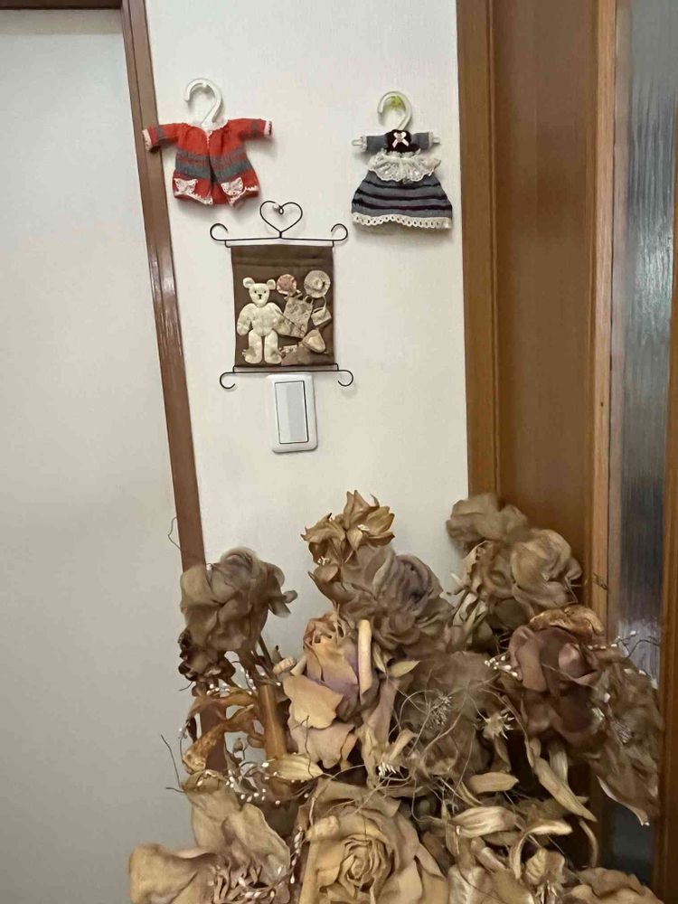 トイレ脇に古いアートフラワーと一緒に写しました。